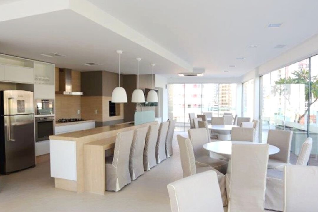 São 161m² de área privativa, com 3 suítes (sendo 1 master com hidro), cozinha integrada com amplo living, churrasqueira a carvão, lavabo e área de serviço com banheiro. 3 Vagas de garagens privativas.