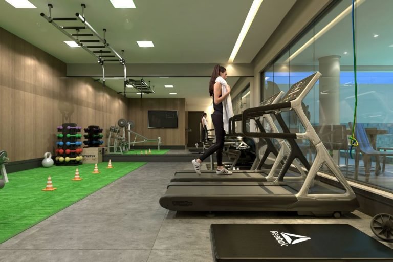 Sua área de lazer conta com salão de festas, brinquedoteca, deck e piscina, pub e academia e uma sala comercial com mezanino.
