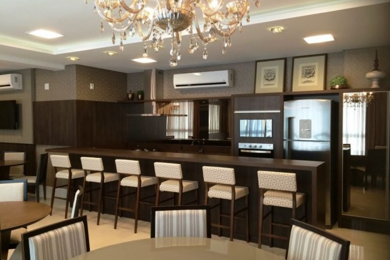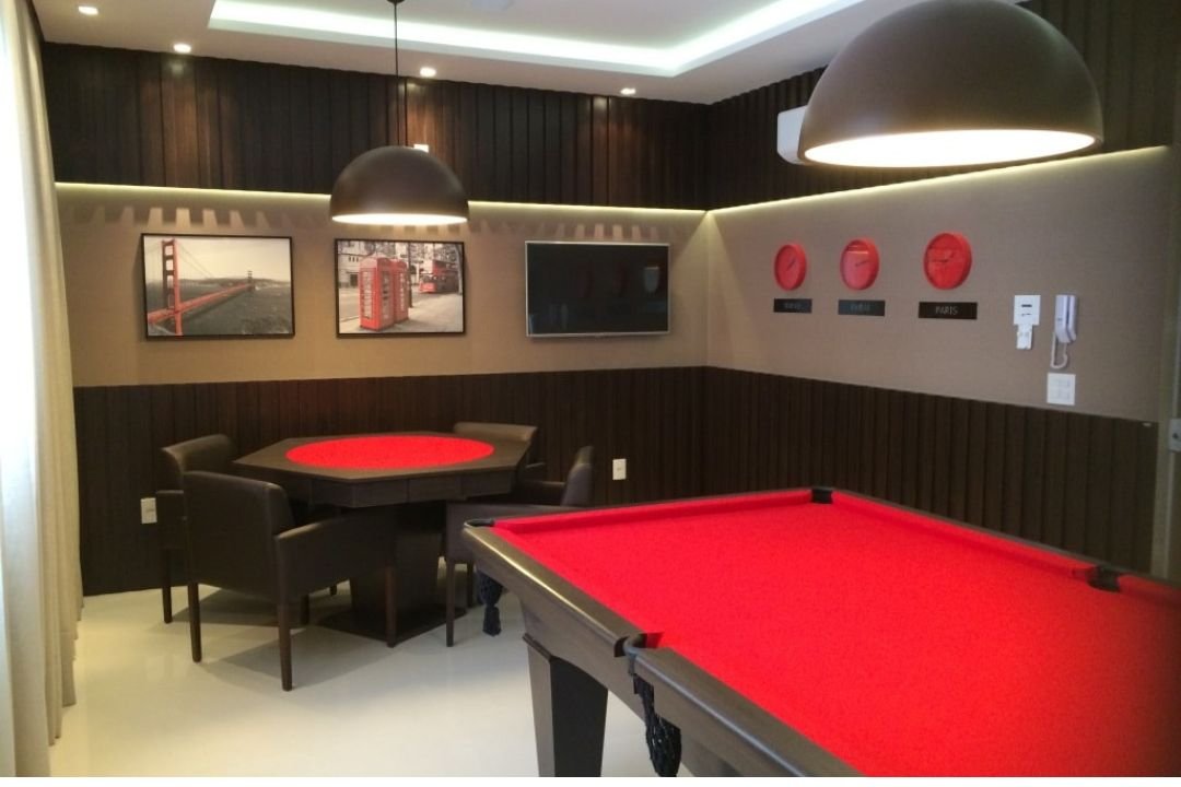 Área de lazer possui piscina, salão de festas, espaço gourmet, fitness, sauna, sala de jogos, brinquedoteca e playground.