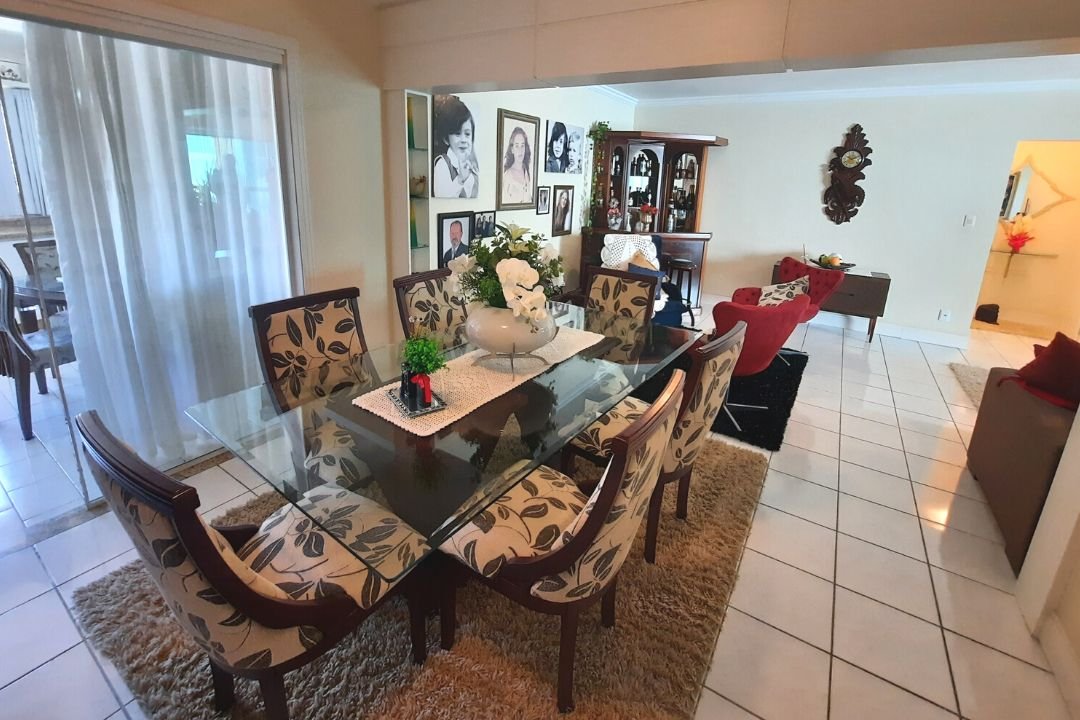 235m² privativos com 3 suítes (sendo 1 máster com closet), sacada com vista para o mar, ambientes amplos, cozinha, sala de estar, sala de jantar, lavabo, área de serviço, dependência e 1 vaga de garagem privativa.